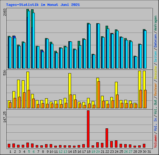 | Tages-Statistik im Monat Juni 2021 | ||||||||||||||||